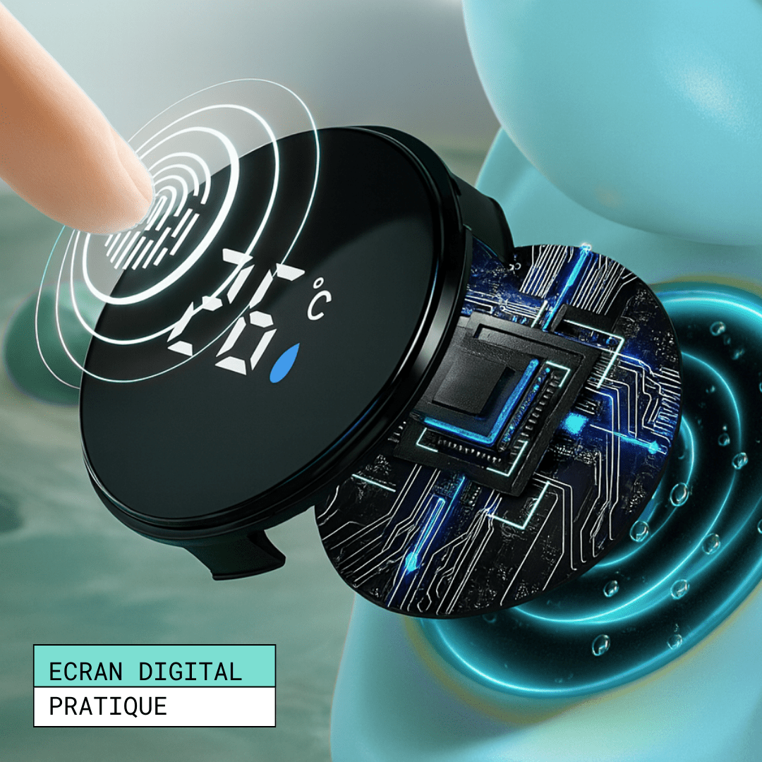 Das intuitive Touch-Display zeigt die Temperatur sofort an – ohne komplizierte Tasten oder Wartezeit. So erkennen Sie sofort, ob das Wasser zu kalt, genau richtig oder zu heiß für Ihr Baby ist.