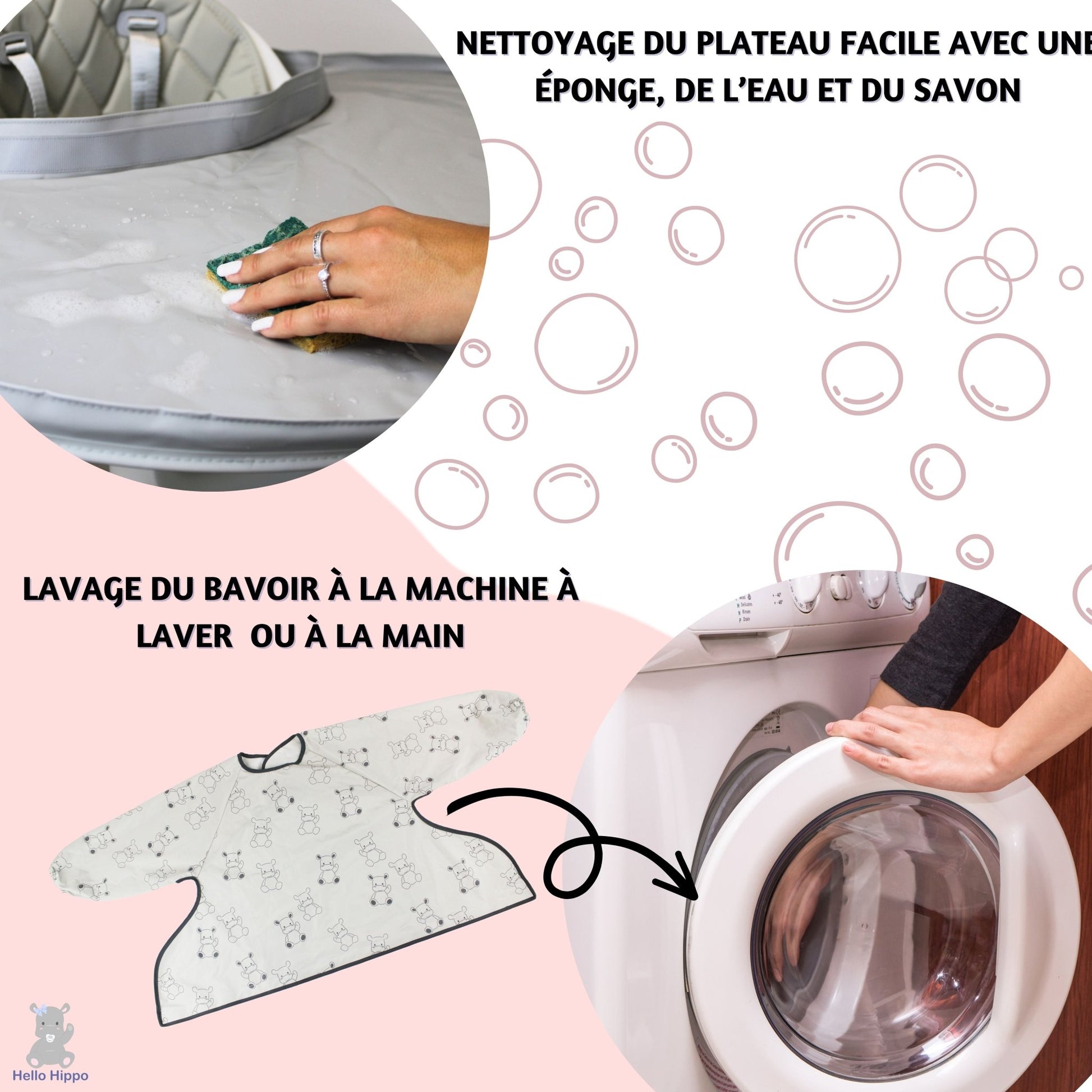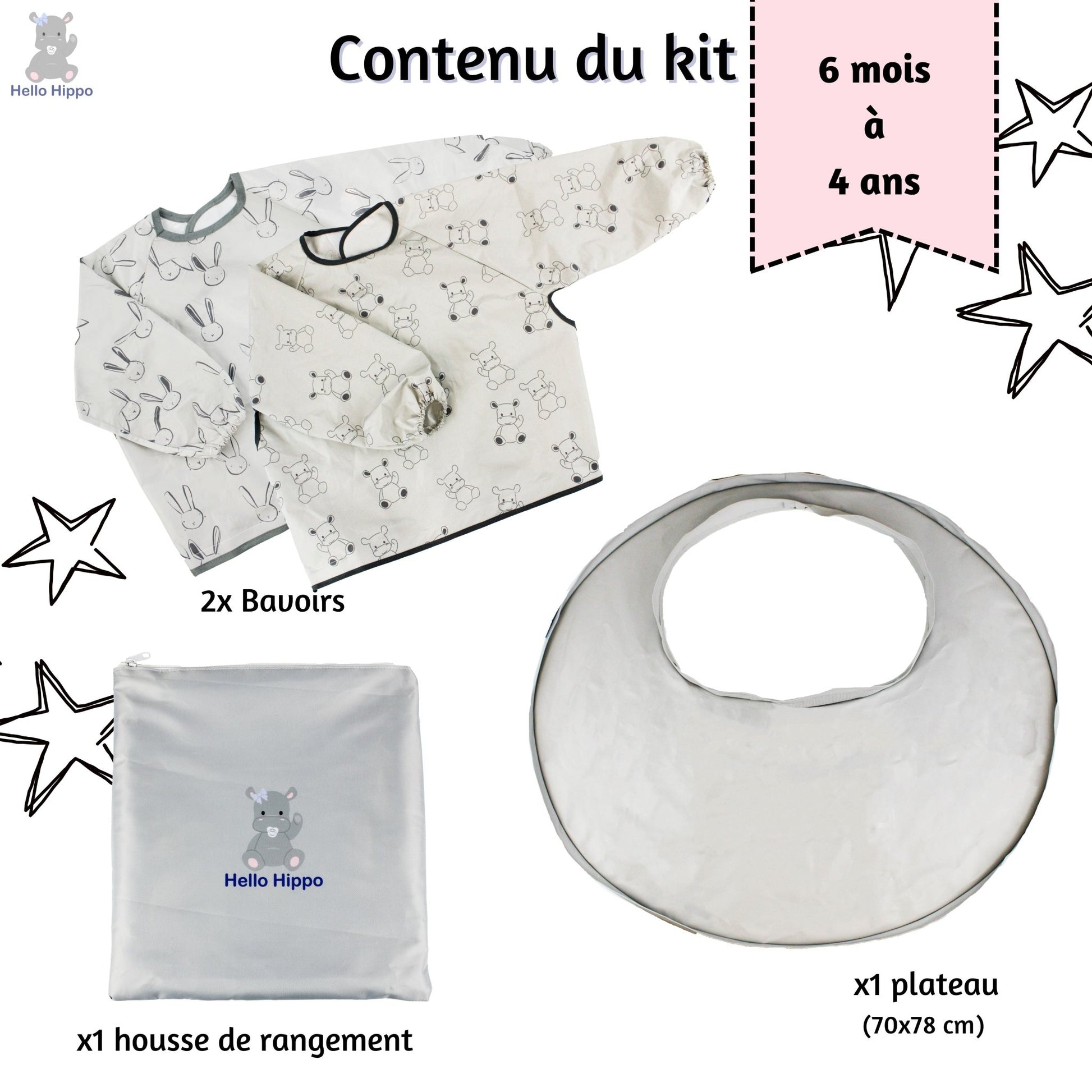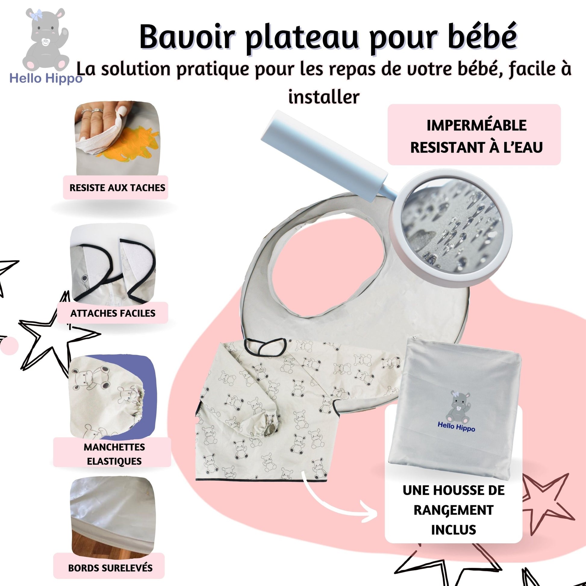 Protect your high chair and your baby’s clothes during mealtime with the Hello Hippo waterproof bib and tray set. Also perfect for messy activities like painting, drawing, playing with sand, cooking, glue, and glitter!