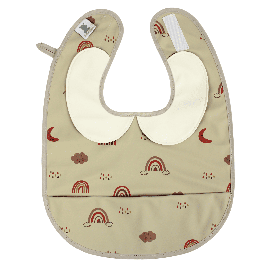 Combina estilo y funcionalidad con este babero de tela impermeable con cuello Claudine.