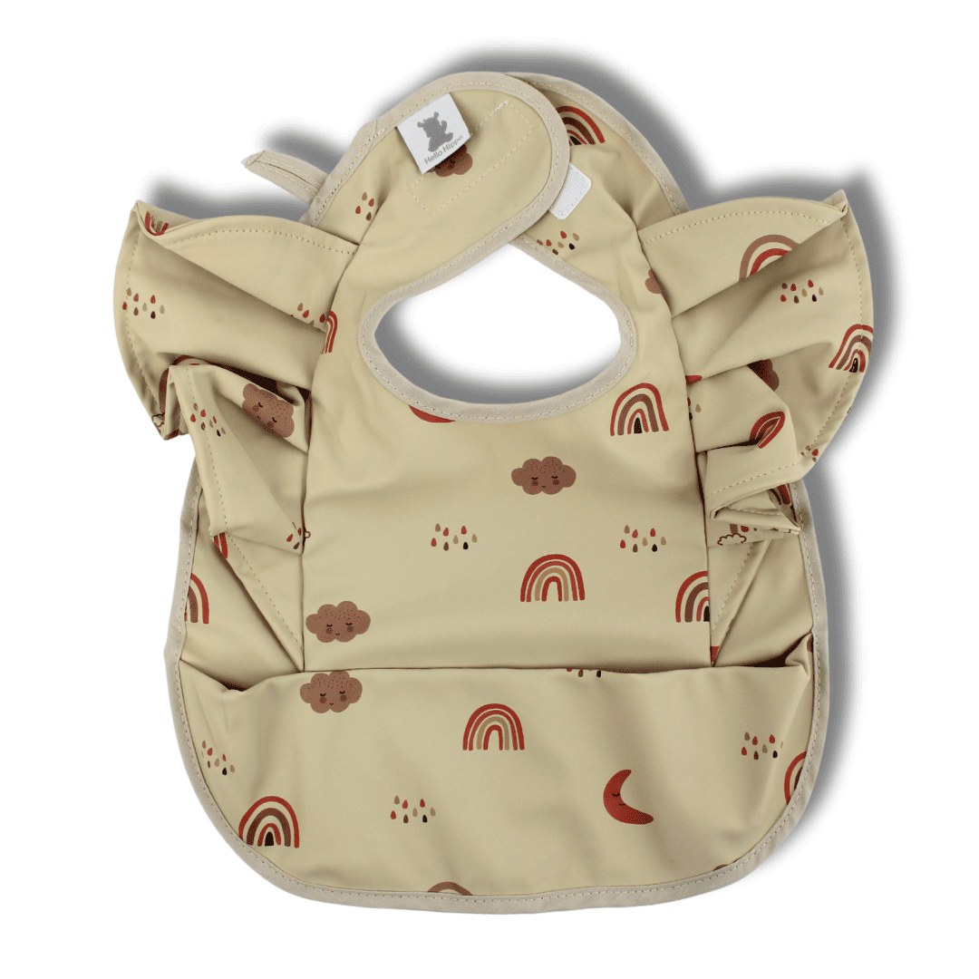 Dale a tu bebé un toque de elegancia y una protección total con este babero impermeable con volantes, vendido por unidad.