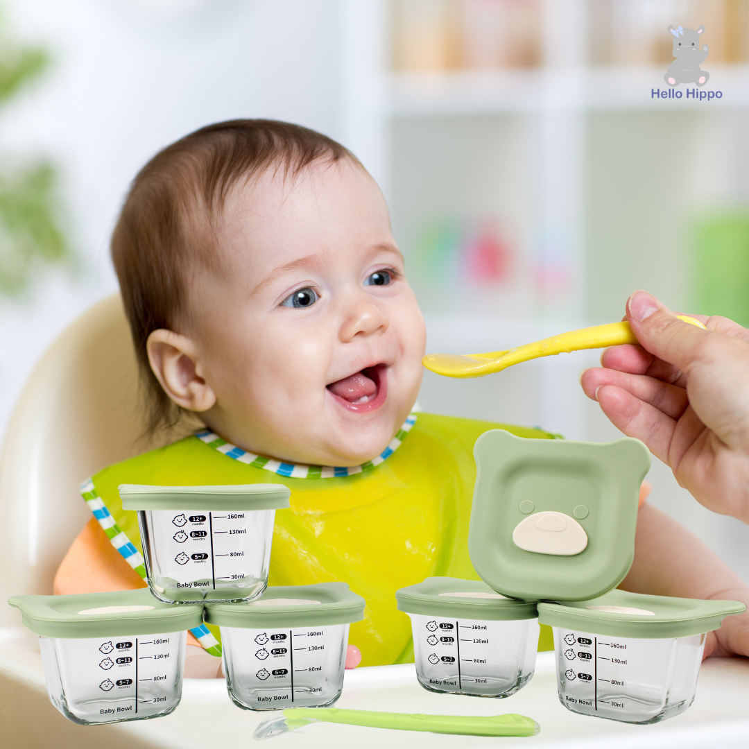 Les petits pots en verre Hello Hippo sont le compagnon parfait pour la diversification alimentaire de bébé. Avec leur contenance de 160 ml, leur graduation précise, et leurs couvercles hermétiques, ils permettent de préparer, stocker et servir purées, compotes ou fruits frais en toute simplicité. Conçus sans BPA, durables et pratiques, ils sont idéaux pour des repas faits maison, à la maison ou en déplacement.