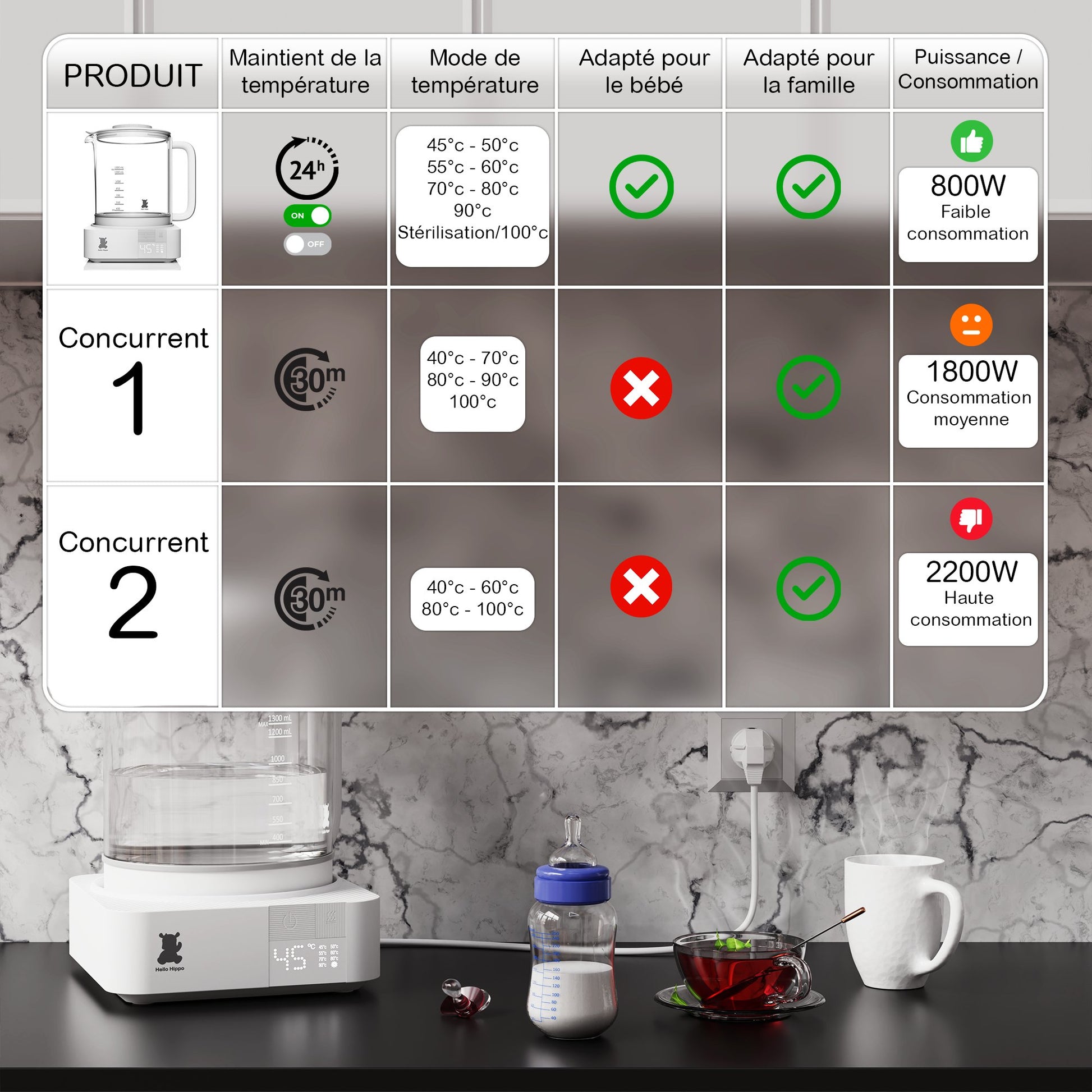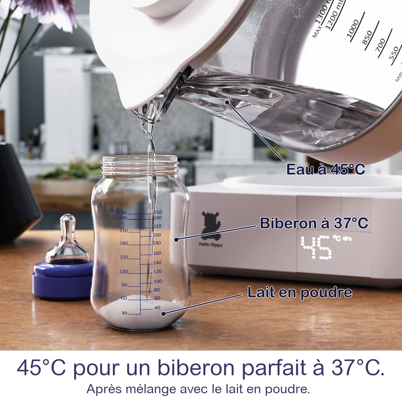 👶 Pensée pour les familles : Avec sa fonction chauffe-biberon et stérilisation intégrée, la Hello Hippo est la bouilloire rêvée des jeunes parents. Elle prépare vos biberons à la température idéale en toute sécurité, de jour comme de nuit.